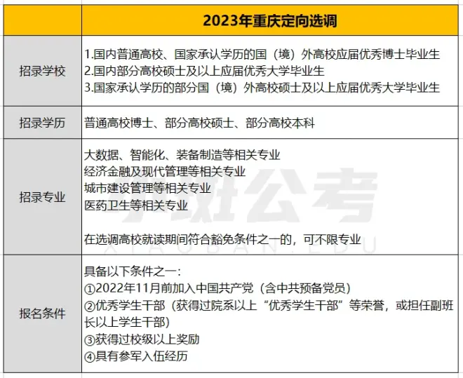 重庆历年定向选调公告都明确指出: