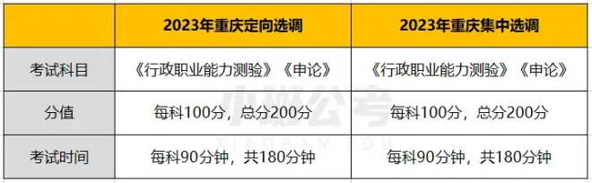 重庆定向选调和集中选调笔试科目均为《行政职业能力测验》《申论》