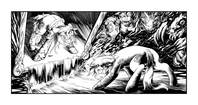 薇薇遇到掠夺者并干掉了他们。小皮一行前往地狱犬领地的郊区。红眼的部队来过那里,但全部被天角兽干掉了。小皮独自一马去见女神,拖延时间。哔哔小马的发出警报:快跑,43分钟后炸弹将爆炸。小皮明白了自己的计划:她从葛瓦德那里借了一件隐形斗篷,用派对时间曼他特说服红眼用他的野火炸弹攻击女神,并让泽妮思偷偷安放了野火炸弹。小皮毁掉了黑皮书。英克雷的外交官抵达,想与女神结成联盟。小皮进入了一个用来抵御超聚魔法攻击的安全室。大爆炸之后,“大天马英克雷劫持了无线电波,宣称他们是来拯救小马国的。