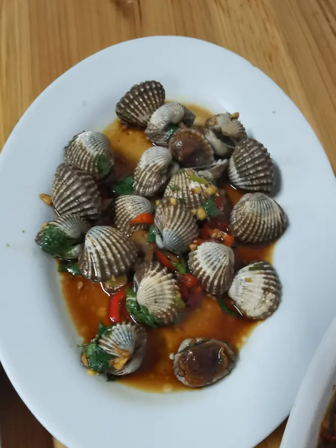 晚餐去了民宿前台小姐姐强烈推荐并安利的枫春白粥,去之前我还想一个白粥有啥好推荐的,去了之后感觉是我草率了,好吃到无法想象。我们是下午五点多一点去的,正好还有最后一个位置,屋内已经爆满,让媳妇先去占着桌,我去点菜,白粥两元一位,无限加;我们点了鱼饭、大肠拼盘、生腌虾、生腌牡蛎、生腌血蛤还有一盘蒜蓉红薯叶,点菜的时候我还在做心理建设,大家都点了应该吃着没事,大不了我们少吃点。。。白粥和菜都要自取,在潮州吃饭不要考虑服务,味道至上。大碗白粥味道非常醇厚,好喝;鱼饭在我们看来中规中矩,本身鱼有咸味,蘸着普宁豆酱吃略微有点点咸,后边我们吃的时候就没蘸;大肠软糯又带点嚼劲,卤的特别入味,完全没有脏器味,拼了豆干和雪菜,也是特别好吃;重磅登场的生腌登场,我们战战兢兢的剥开生腌虾,虾是海白虾,非常新鲜,肉脆弹,带着料汁的味道,非常非常美味,媳妇说回去要复刻下。。。生蚝滑嫩的口感带着海水的味道和淡淡的牛奶香,很鲜美,血蛤是炒过水的,从后背可以打开,肉是脆脆的带点弹牙。我们充分发挥光盘行为,吃的精光,在每人喝了两大碗粥,造光所有的食物后,我们削微有点小紧张,因为我的肠胃本身就不太好,吃了这么多生腌觉得是不是肠胃会受不了,反过来想幸亏离酒店近,如果要是肚子不舒服抓紧往回跑,但是整顿饭吃完完全没有任何感觉,充分证明了生腌完全没问题。总结来说这一顿饭是我们在潮州留下深刻印象的一餐,两份粥钱、鱼饭、大肠拼盘、生腌虾、生蚝、血蛤、蒜蓉红薯叶,所有的加在一起花了119块,人均60的消费,非常非常nice!!结账出门的时候看到客栈前台小姐姐在门外自己喝着粥,她点了一份金不换炒薄壳米,当地人都来排队吃他们家,果然还是有一定的道理,打过招呼后我们回到酒店休息。