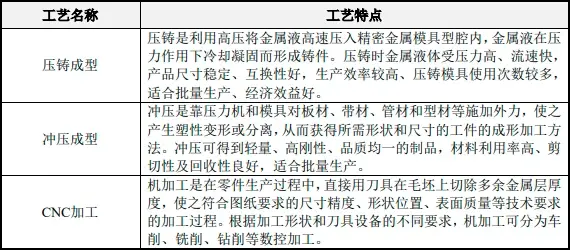 精密结构件:精密结构件是指经由精密模具设计及制造、精密压铸、精密冲压、机加工等主要工艺流程将材料制成预定设计要求形状或尺寸的部件。精密结构件作为工业领域关键的中间产品,通过精密结构件制造企业对不同类型、规格的材料进行单独设计和研发来适应各终端产品的技术要求,相较于一般的工业制品,既具有产品稳定性强、抗疲劳与抗衰减性能好等优势,又具有专业性强、加工精度高、表面光洁度好等特点,被广泛应用于通信设备制造、新能源设备制造、汽车制造等多个领域。