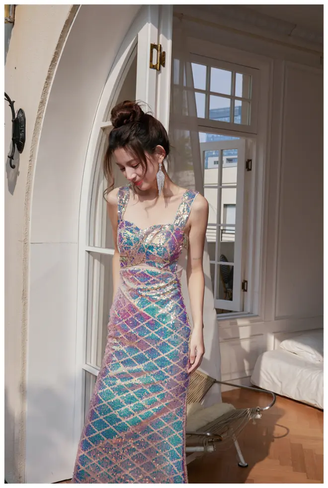 人鱼恋歌dollytang超大蝴蝶结鱼尾连衣裙爆闪亮片小礼服年会战袍