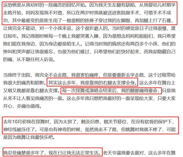 此前李玟传离婚消息后,整个人暴瘦憔悴,大家以为她大受打击时,她曾发文告知外界自己左腿有先天性缺陷,这么多年能跳舞已经是奇迹,但也因为常年剧烈运动,导致李玟已经不能走路。