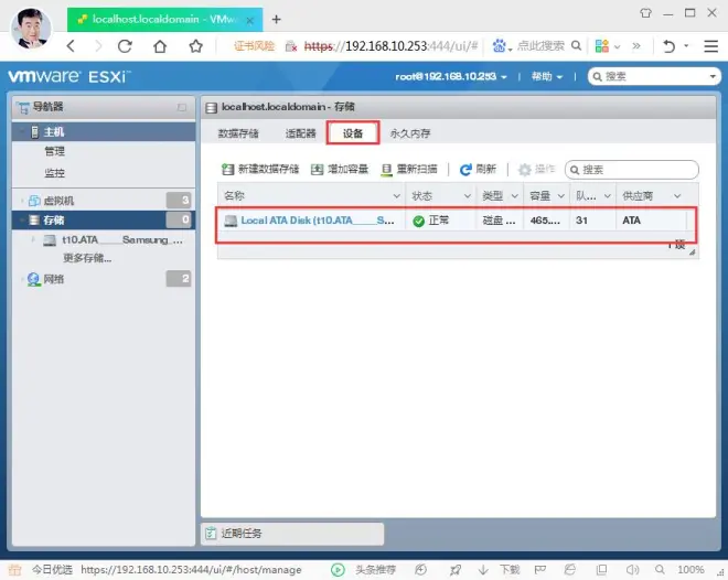 进入存储->数据存储,数据盘datastore1已经丢失。