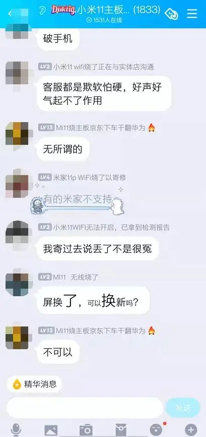 立志攻克高端手机堡垒的小米又出事了,据多位网友爆料, 小米去年年底推出的旗舰机型小米11出现大范围品控问题, 网上关于小米11的投诉越来越多,据悉有1800人因为买了小米11而出现严重质量问题齐聚在一个QQ群里维权, 网友集中反映的问题为小米11手机过热、WiFi故障、MIUI系统Bug等。有网友发出评论:小米果然是为发烧而生,自己的手机都高烧60度了,除此之外,小米11主板问题也登上了相关热搜。