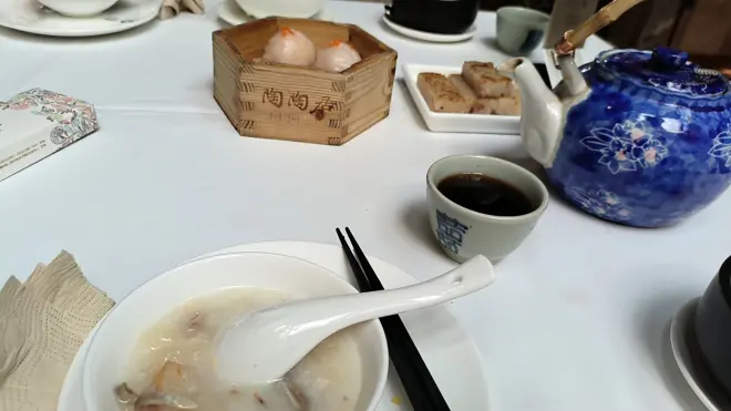 陶陶居的早茶,萝卜糕,虾饺,菠萝包,肠粉,粥双皮奶,两人套餐叭,一百多,感觉还挺实惠(分量可以,俺两人没吃完)的店里环境很好,而且味道也还可以,外地游客要体验早茶,完全可以来!