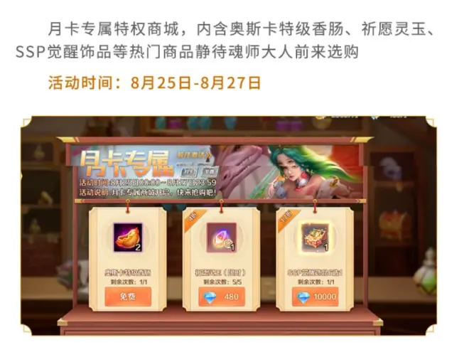 月卡商城,氪金的五个2400,SSP魂师觉醒饰品礼包1W一个,总计1.24W!