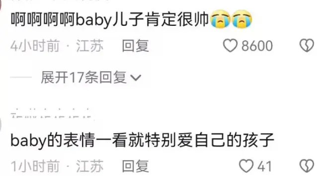 有网友直言,baby的儿子肯定很帅吧,母子俩的感情真好。