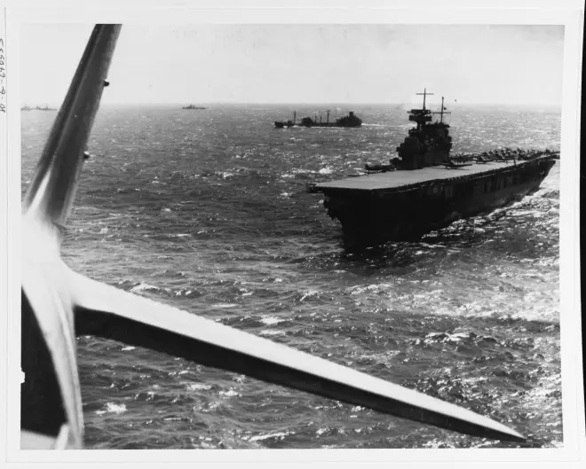 1944年5月28日在珍珠港航行的约克城号航空母舰