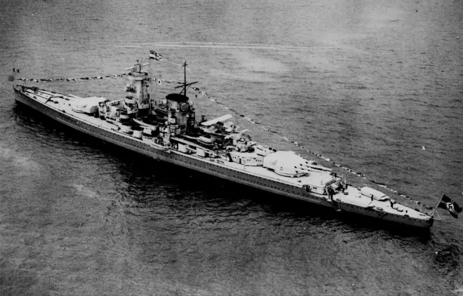 1937年5月30日,参加斯皮特海德皇家阅舰式的德国海军斯佩伯爵号装甲舰