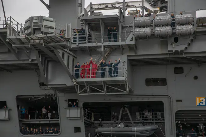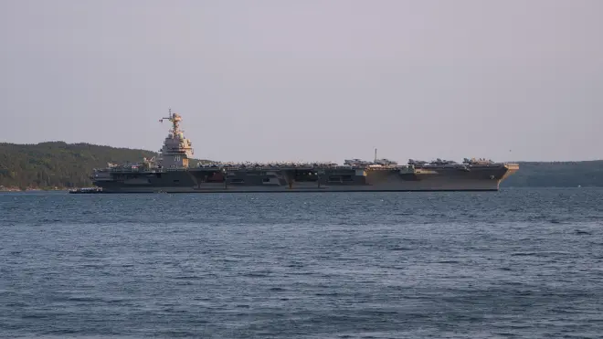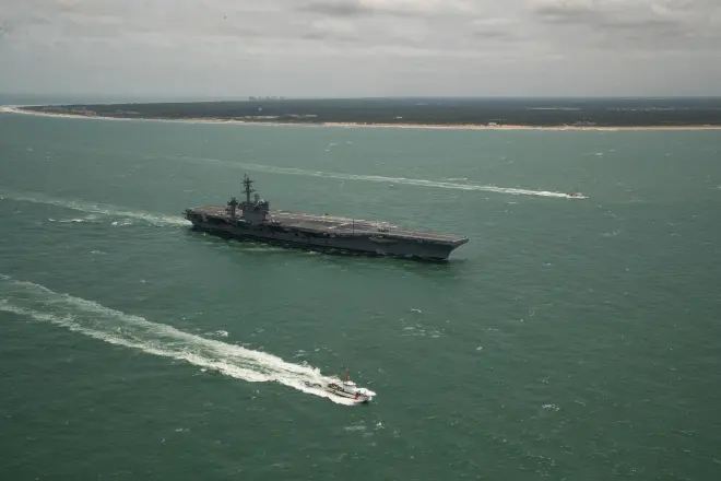 完成加油和综合大修 (RCOH)后进入诺福克海军基地的乔治.华盛顿号航空母舰