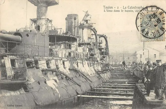 1917年3月发生自燃事故后被烧毁的法国海军战列舰耶拿号