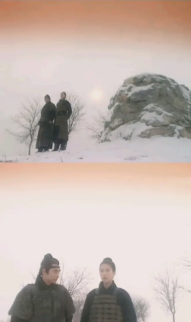 每次,当花木兰和李亮将军站在高岗上瞭望着远方时,雪地与既昏也明的阳光,勾勒出别样的风景。