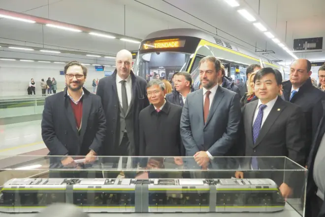 葡萄牙环境部部长Duarte Cordeiro向媒体介绍了波尔图新型地铁列车的情况。他表示,来自中国的18辆新型地铁将会陆续抵达并投入使用,这可以增加地铁载客量,进一步提升波尔图市民的出行体验。