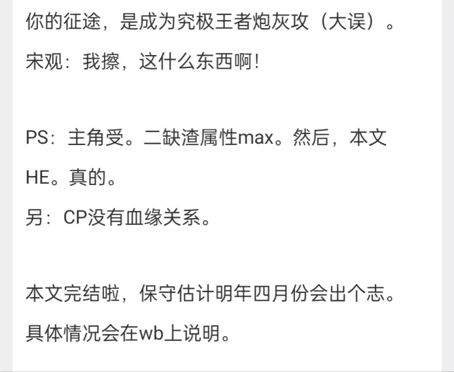 就是可能有很长一段时间不会推主受快穿文了,主要原因也很简单,看太多了,有些疲累。之后遇到好的,新颖的,也会继续推。