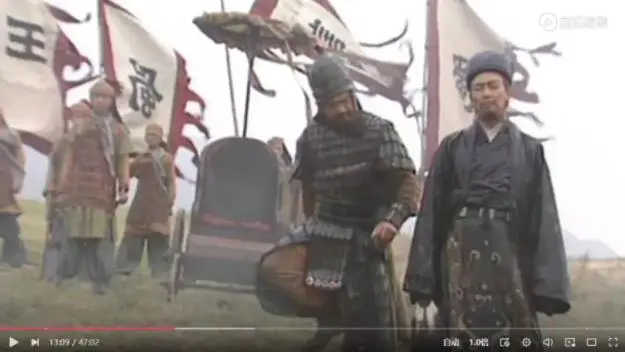 他背后有一位将军非常关爱他,主动给他捶背,这个人就是王平。(后来看了第二遍发现手好像也不是王平的,这就更诡异了,因为镜头切换机位发现唐老师背后明明只有王平……莫名其妙的第三只手😳……但王平明显知道唐丞相身体非常虚弱)