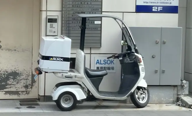 在日本街头经常看到这种日本的外卖神车!这种三轮的摩托车竟然还能在机动车道上行驶