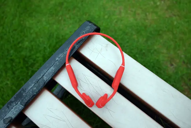 南卡Runner Pro4S骨传导运动耳机采用了灰色和红色的配色方案,我体验到的是红色款,非常的骚气显眼,很适合女士以及喜欢运动的人士佩戴,就像我的球衣也是大红色。整体看起来非常时尚。
