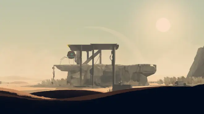 画面唯美治愈,Bgm应景震撼,镜头切换自然舒适,代入感十足。虽然没有字幕,也听不懂角色之间的交流,但可以轻易理解剧情,本作一大亮点即伙伴,主角力气大,能操作外星设备;宠物跳得高,能控制生物,按开关,在整个游戏过程中逐渐建立起和宠物黑煤球儿的羁绊。特别是从森林到沙漠的奔跑过程,配合舒缓的Bgm,这意境简直不要太温馨,尤其是到沙漠悬崖前,主角温柔的摸摸黑煤球儿,一起看着远处巨大的外星机械发出冷酷的贯穿整个游戏过程的dengdeng声,不得不说,本作的制作团队真的很会拿捏画面镜头和bgm。