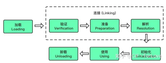 看你简历写得熟悉 JVM,那你说说类的加载过程吧?