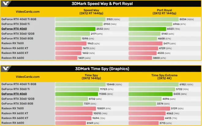 3DMark的测试成绩要好很多,对比上代RTX 3060 8GB平均提升幅度达47.9%。对比RTX 3060 12GB大显存版本,提升就不明显,仅22.8%。值得一提的是,测试中使用的驱动还是老版536.20,正式上市后搭配新驱动,还有更多提升。当然,3DMark测试只是理论性能,一般来说在游戏中表现会低一些,但笔者猜测RTX 4060仍能获得20%左右的性能提升。