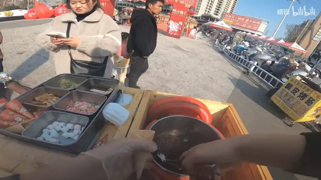 骑着小单车,看下这边小吃摊主很多