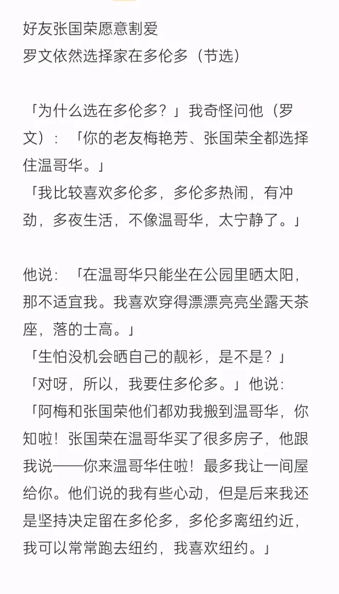 资料来源见水印 在罗记的报道中,他俩常常成对出现🌝 原来有一个阶段,阿梅也打算移民温哥华,在那边买了房子,他们还一起游说罗文加入温哥华的队伍 老张和罗记的关系,有时让人觉得很亲密,有时又觉得麻麻🤔 不知道在温哥华的他们有没有互相串门
