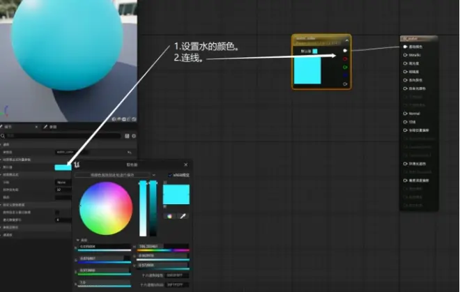 保存后,右击材质,选择创建示例,并将创建后的材质实例直接拖到场景地面上。