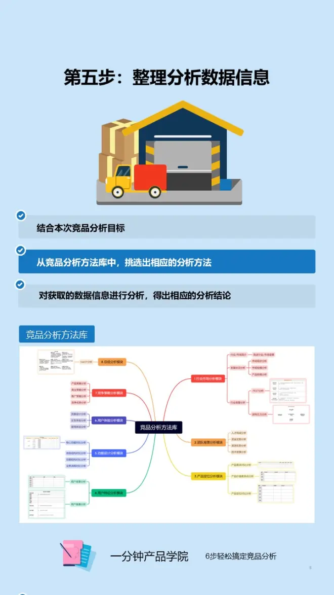 竞品分析方法库由8大模块组成: