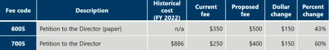 给局长的请求书(纸质申请)费用由350美元上调到500美元,上调幅度43%;