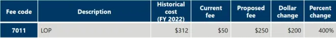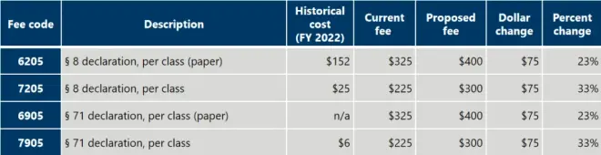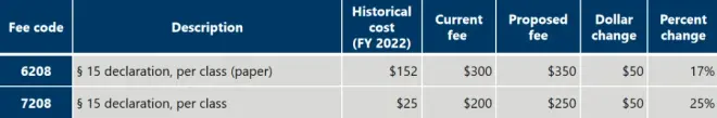 每个类别的不可抗辩声明费用由200美元上调到250美元,上调幅度25%。