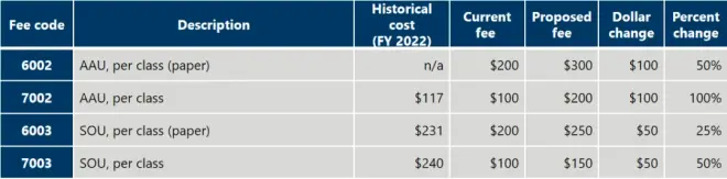 每个类别的使用声明修正(纸质申请)由200美元上调到300美元,上调幅度50%;