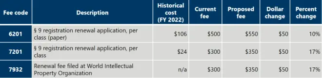 每个类别的商标续展(纸质申请)由500美元上调到550美元,上调幅度10%;