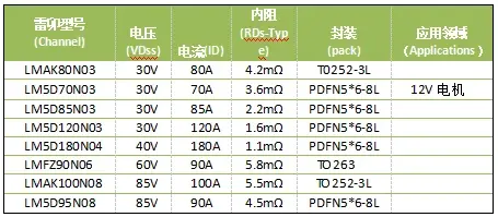 (3) 从工艺上有Trench MOSFETS(-100V~150V),SGT MOSFETS(30V~150V).