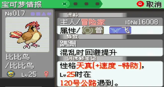 这个数字来自于下图的比比鸟,是作者临时测试随便抓的一只精灵: