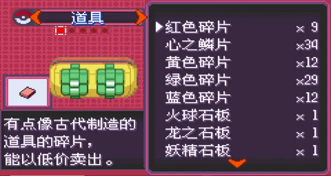 下图为作者的一个存档,打开背包,找到道具,一直拉到最上面: