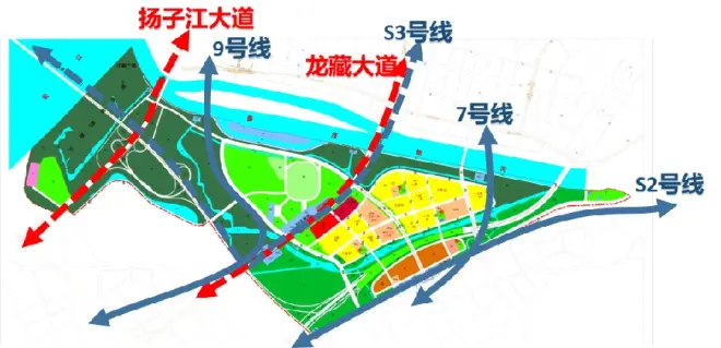 同时,沿龙王大街&龙藏大道,鱼嘴CBD也迎来新的板块轮动发展机遇,以S3为轴线,鱼嘴CBD企业总部、南京未来第一高楼和南京南站、软件谷等高光板块无缝联动发展…..双重利好风口,无不印证河西下一个“黄金时代”的走向在鱼嘴CBD!