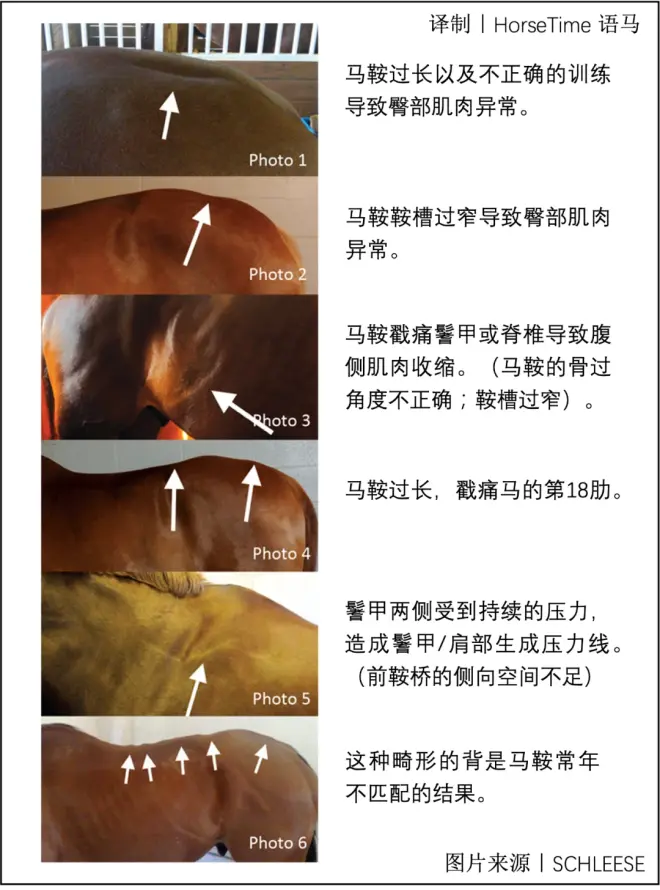 1. 背部肿胀,鞍伤,肚带伤等说明了马鞍的不匹配。