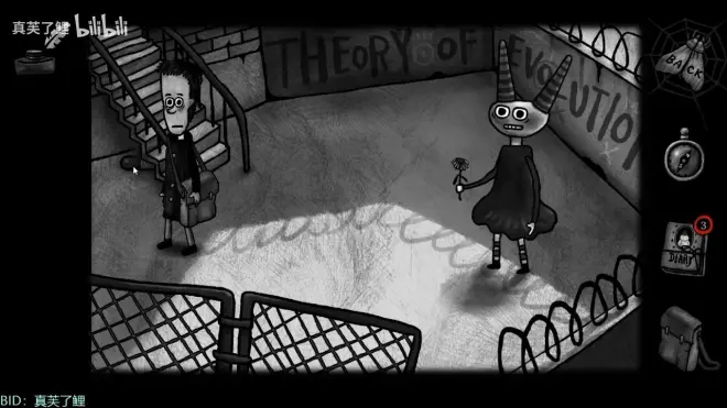 上去之后有锁着的大蜘蛛,使用第20条显微镜的线索解谜开锁。