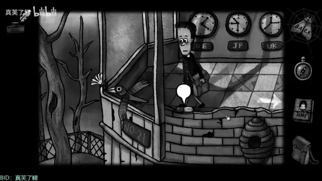 20.用请前面二楼栏杆上自然杂志掉出来的线索使用显微镜。(这个可以解开锁着大蜘蛛的密码)。