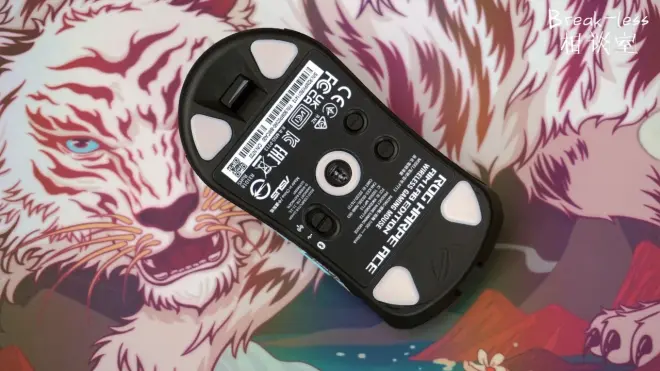 当然,极致的轻量化,总是要做出很多妥协的。没有了ROG的快拆更换微动,对我来说确实少了很多可玩性,毕竟换微动微调手感这事儿对我来说还是挺有吸引力的;其次,鼠标全身的发光单元仅仅只有滚轮一处,重要的ROG“败家之眼”LOGO处的光效则是很遗憾的为轻量化让了道,让我首次触电ROG的时候没能看到“信仰灯”的亮起,多少有些遗憾。不过,越是在使用的时候越能感受到,ROG不愧是国际一线大厂,在整个日常使用过程中,不显山不漏水,一切的交互都很巧妙的控制在了“刚刚好”的阶段,日常使用的感受只能用“顺滑流畅”来形容,这才是一款好产品,好工具应该表现出的样子。