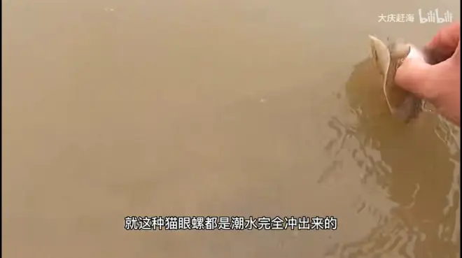 大海退潮后,大庆赶海发现大蛏子的呼吸孔正在吐水,还有海鸭蛋
