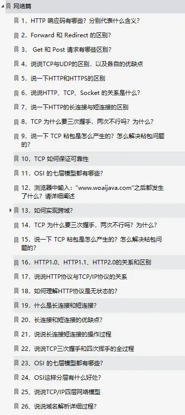 这份面试总结比较多,就不一一的详细介绍了,粗略的将主要内容展示一下,其中含有20+的知识点: