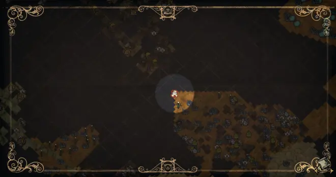 1.如果需要利用此方法,那么在远古猴子区及其附近区域探图时,请务必使用鼹鼠帽,因为矿工帽、提灯、火把等视野太小,极容易错过中庭。脸黑点戴着鼹鼠帽发现中庭都够呛(如图6)。