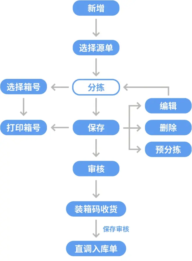分拣人员在分拣时,可通过移动端进行操作,并选择装箱码收货。以小象5.7摘果式分拣为例: 使用前必须开启配送箱功能。即:选择直调出库单生成分拣单,分拣单输入箱号,选择箱号或者扫描箱号新增装箱码收货单,审核后生成直调入库单。
