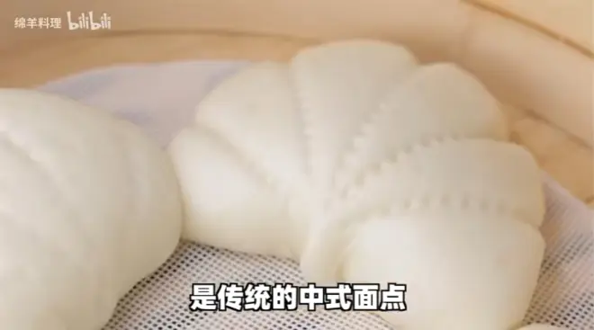 面粉、酵母、牛奶揉团、分块、覆膜发酵、揉到光滑、搓圆、擀扁、刷油、对着、压纹理、修整造型、上锅蒸35分钟
