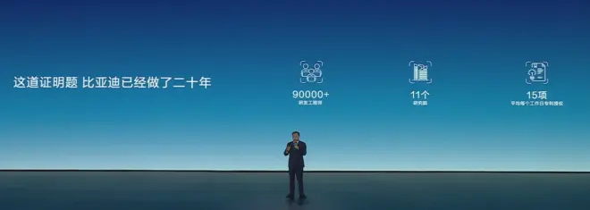 截至目前,比亚迪拥有11个研究院,超9万研发人员,研发总投入超千亿,现在平均每个工作日递交19项专利申请,获得15项专利授权。比亚迪已推出刀片电池、DM混动、CTB电池车身一体化、易四方、云辇等一系列颠覆性技术,推动新能源汽车行业的持续变革。