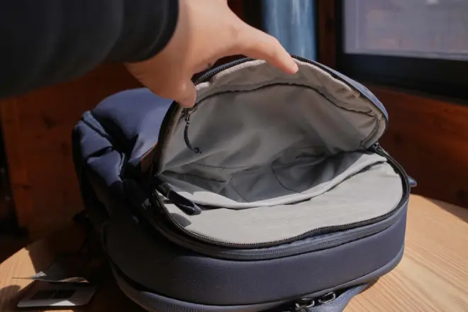 ▲打开顶部、最内侧的拉链,则进入了Travel Backpack 30L的主隔间。