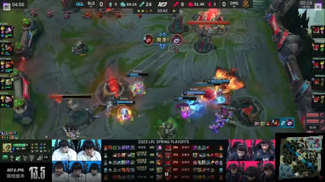 2023年4月8日,英雄联盟LPL2023春季赛季后赛迎来了败者组半决赛OMG与BLG两支战队的对局。经过五场比赛的激烈对局,最终,BLG成功以3:2的战绩击败OMG,将迎来4月11日与胜者组胜者的对局。