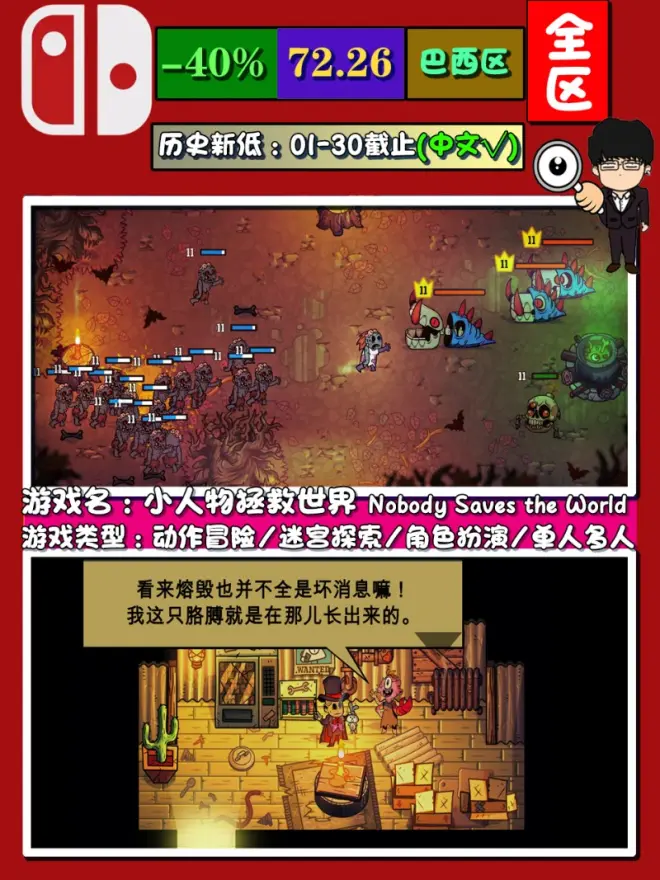 年初四游戏价位低!希望之星新史低!Switch每周打折游戏推荐!
